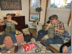 I sent the boys to bed at 11:00 on Christmas Eve. Santa was just too tired to stay up late. They vowed revenge, swearing they would get up early and wake us up by jumping on our bed! (Which, by the way, they’ve NEVER done their whole life!)