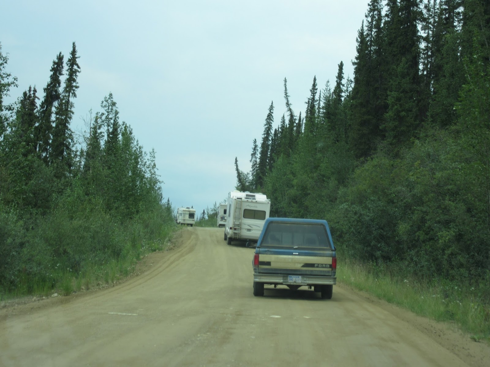 While waiting in line, we met a gentleman from Arizona traveling alone. He flew into Anchorage, bought a car and was driving through Alaska and then home to sell the car. His wife didn't want to camp and wouldn't come along. He also had a horror story about being hassled and searched at the border. After he was asked how long he planned to stay in Canada, he answered, "Until I'm good and ready to leave." Wrong answer!